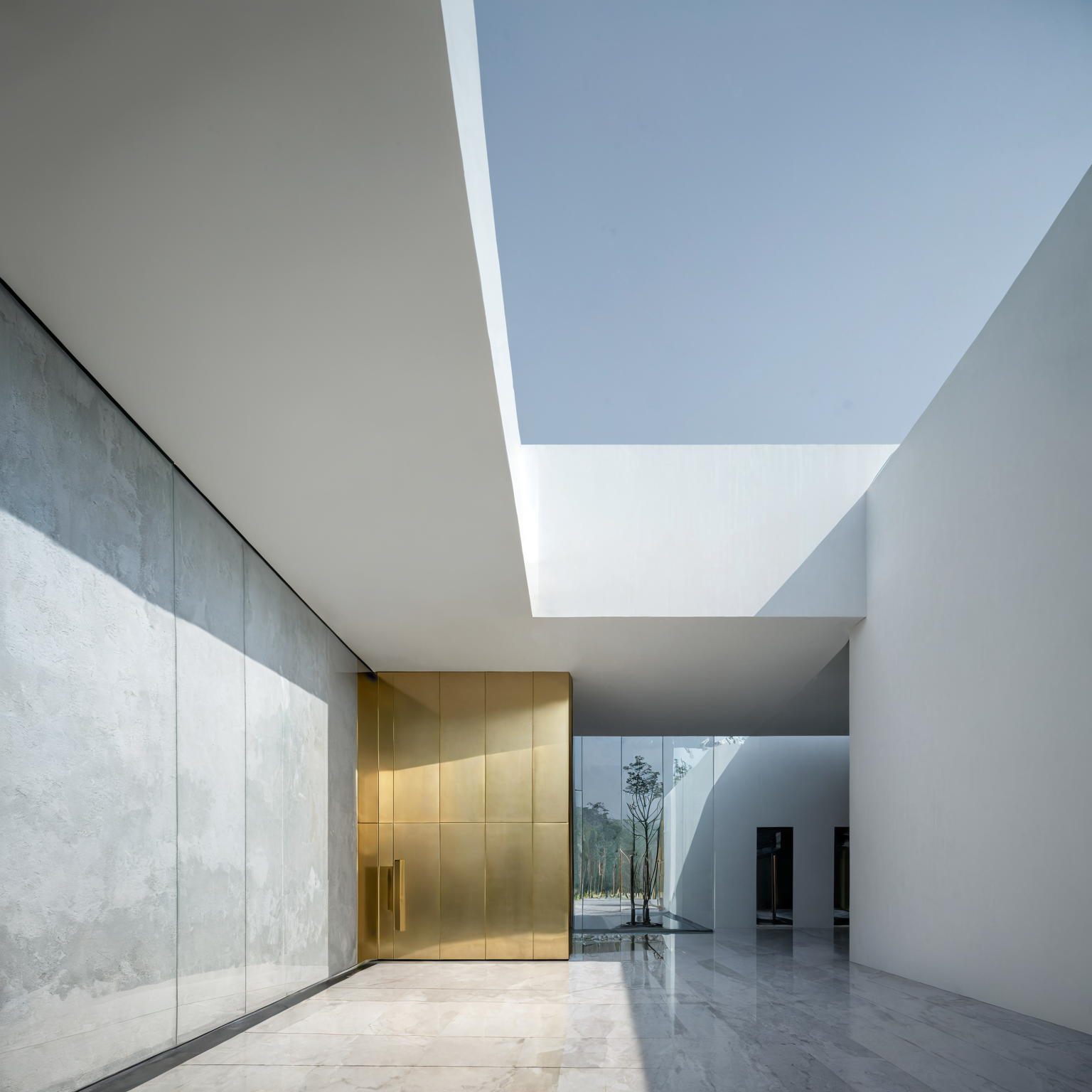 Generated by Image generation Gen-1 public building, realistic photo,modern style,museum, reflect glass, light, dramatic shadow, day time, landscape, pure white |